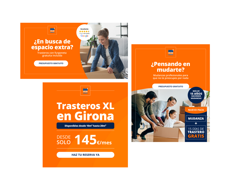 Metrecubic, empresa especialitzada en lloguer de trasters i mudances a Girona, Sabadell i Empuriabrava, necessitava enfortir la seva presència digital per consolidar-se com un referent al sector. El seu repte principal era millorar la visibilitat en línia, optimitzar la captació de clients i transmetre de manera clara el seu valor diferencial: una solució integral que combina emmagatzematge flexible i mudances professionals.